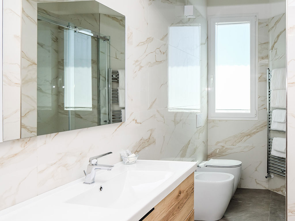 - Bathroom with sink, shower, toilet, and bidet