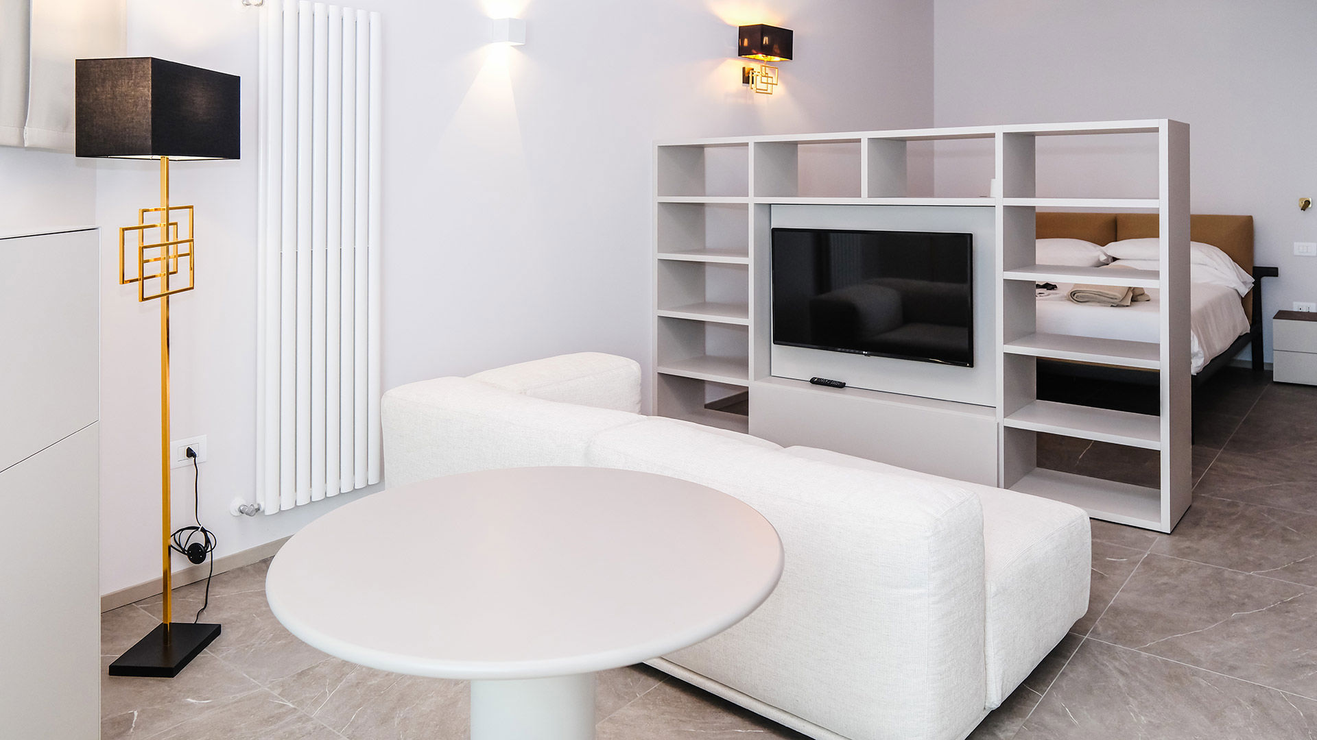 - Relax room on the floor with chaise-longue, infrared sauna, LED TV, tea corner, and fitness area